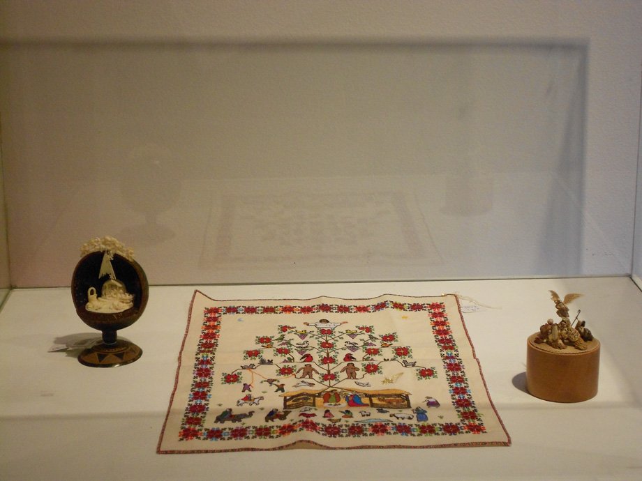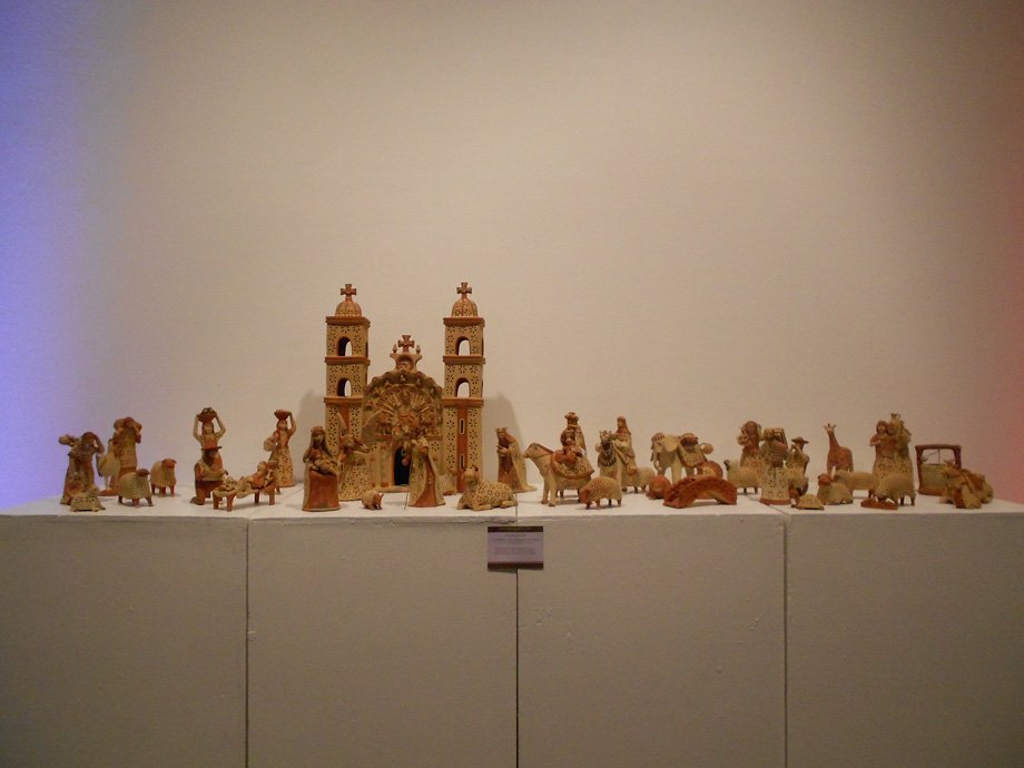 · 1º lugar en la categoría Barro Policromado y Barro Decorado con Engobes Minerales a Carmen Gutiérrez Flores, 42 años, de San Miguel Aguasuelos, Naolinco, de Veracruz (Nahuatl), con la obra Nacimiento de María dando a luz, elaborado en barro decorado con engobes de 48 piezas.