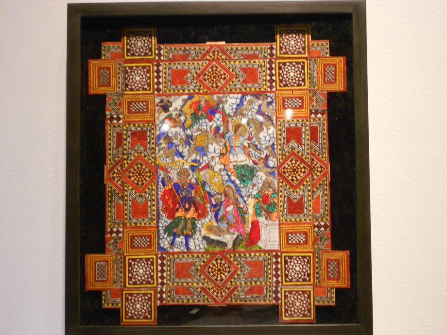 · Galardón Grandes Maestros del Arte Popular a don Marcelino Eduardo Sánchez Rodríguez, de 43 años, proveniente de Escobedo, Nuevo León, con Adoración de los ángeles, elaborada con plumas de aves pegada con cera de Campeche.